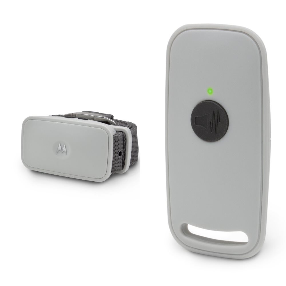 Motorola’s unique Dual Sonic technology provides an effective deterrent to excessive barking or remote activated to discourage other problem behaviors such as jumping up, getting on furniture or raiding the trash. Your dog will quickly learn what behaviors to avoid to be a happier and better behaved member of the family. Easy to use, pocket sized one button remote trainer. Two ultrasonic speakers directed back towards dog to optimize results. Features: Remote battery life: up to 6 months depending on usage. Operation range: 150 feet. Collar strap: grey nylon 3/4″ wide.