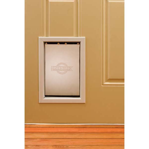 This solid aluminum frame installs easily and the soft, transparent single flap provides a tight weather seal. The Freedom Aluminum door includes a locking panel that gives you the power to control when your pets can use the door. Easy do-it-yourself installation. Great for pets up to 40 lbs (18 kg). Replacement flap: PAC11-11038.